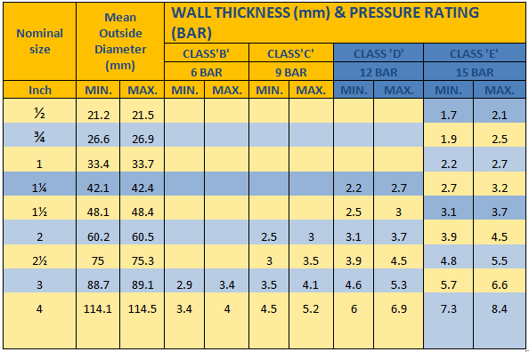 PVC Pressure pipes as manufactured as per IS 4985-2000 , DIN 8062 standards for irrigation sewage water and plumbing pipes with Sizes from 20 mm to 110 mm. We have independent lab facility with all testing instrument to test the pipe manufactured.